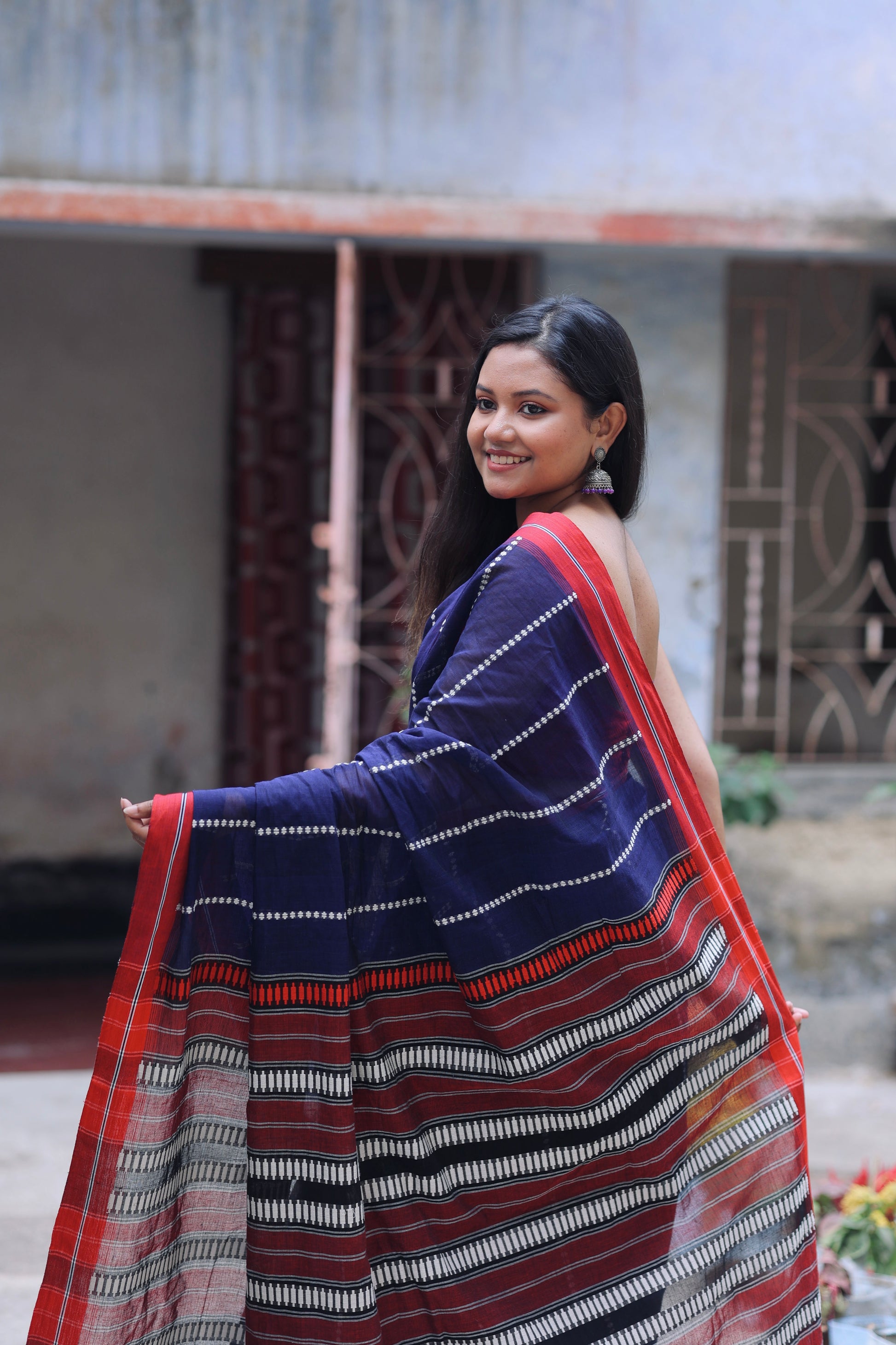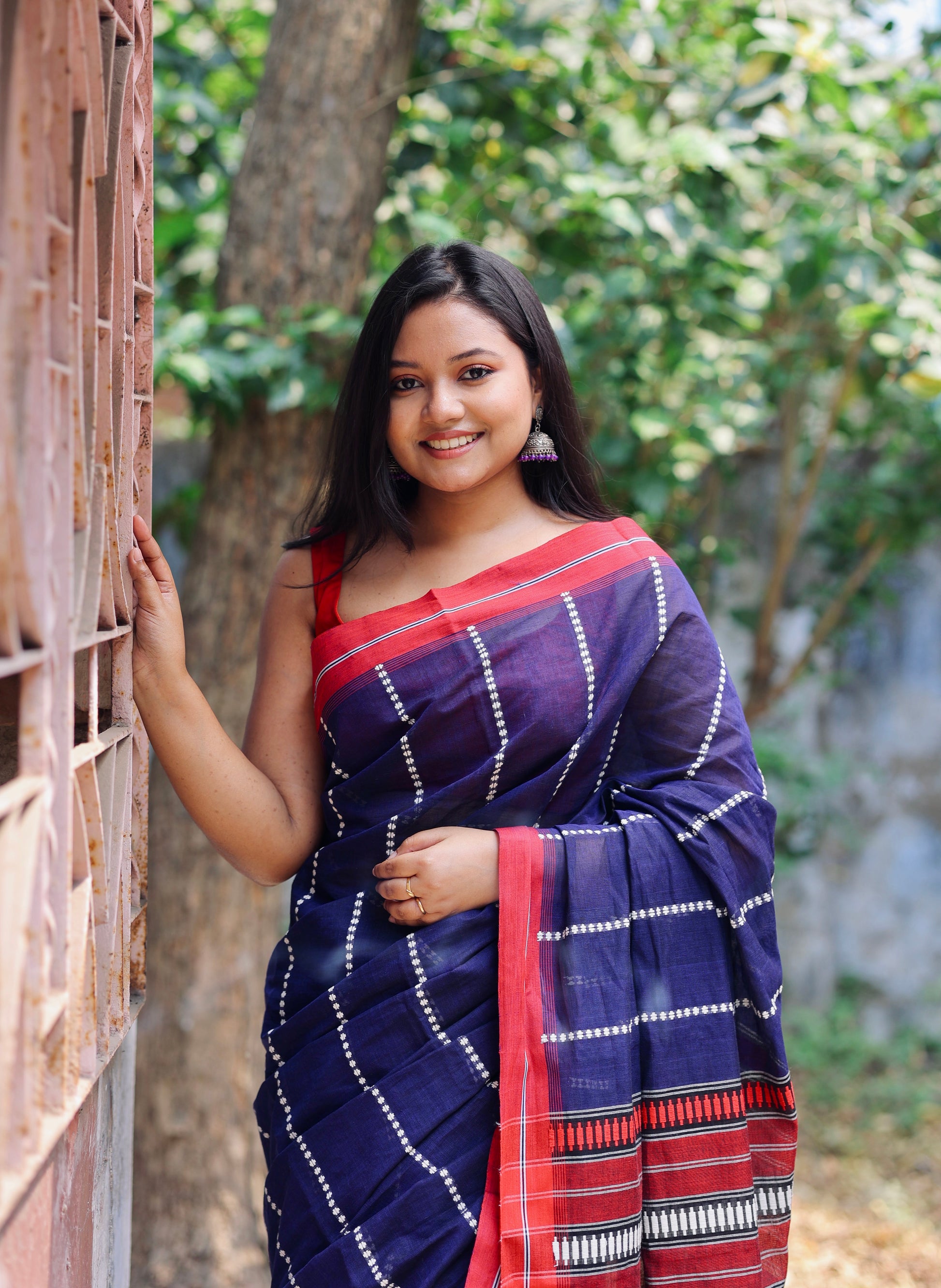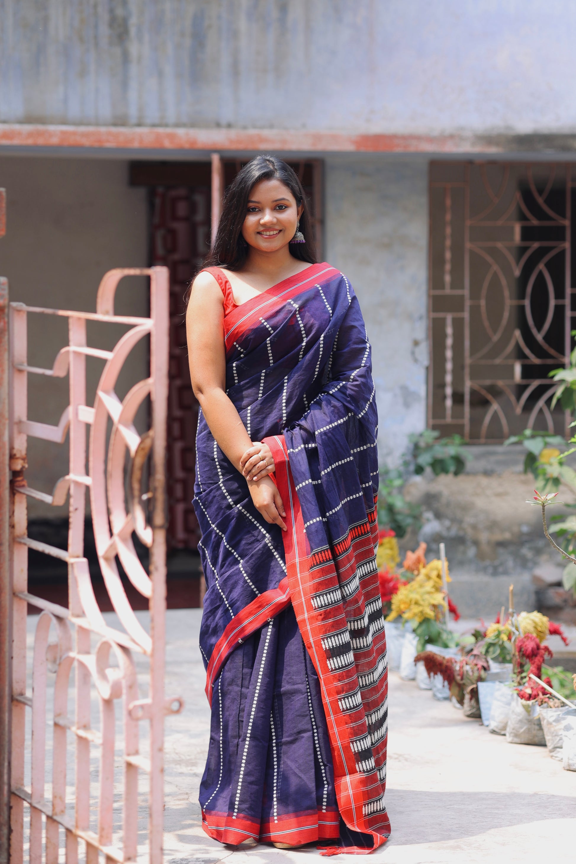 The pure Cotton saree with Jamdani work all over body and palla with Red border