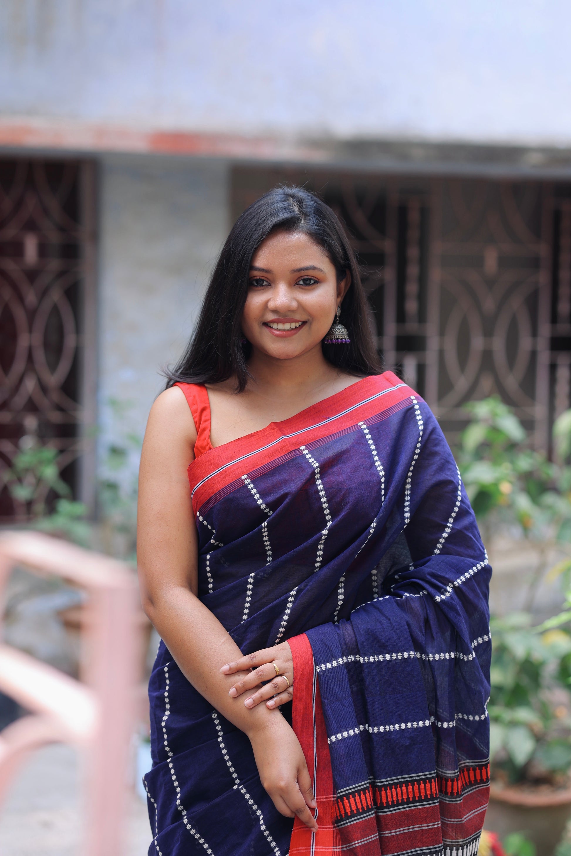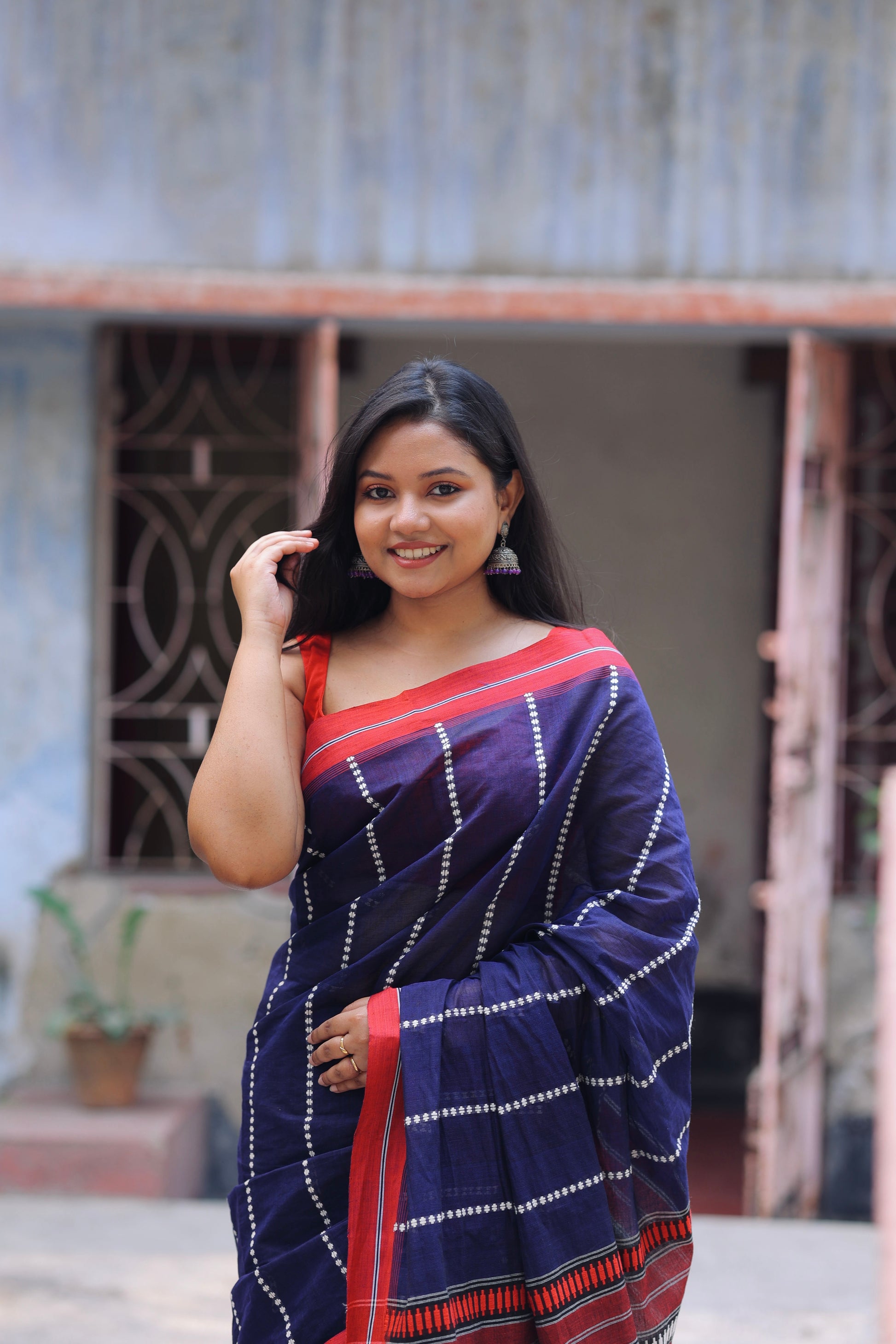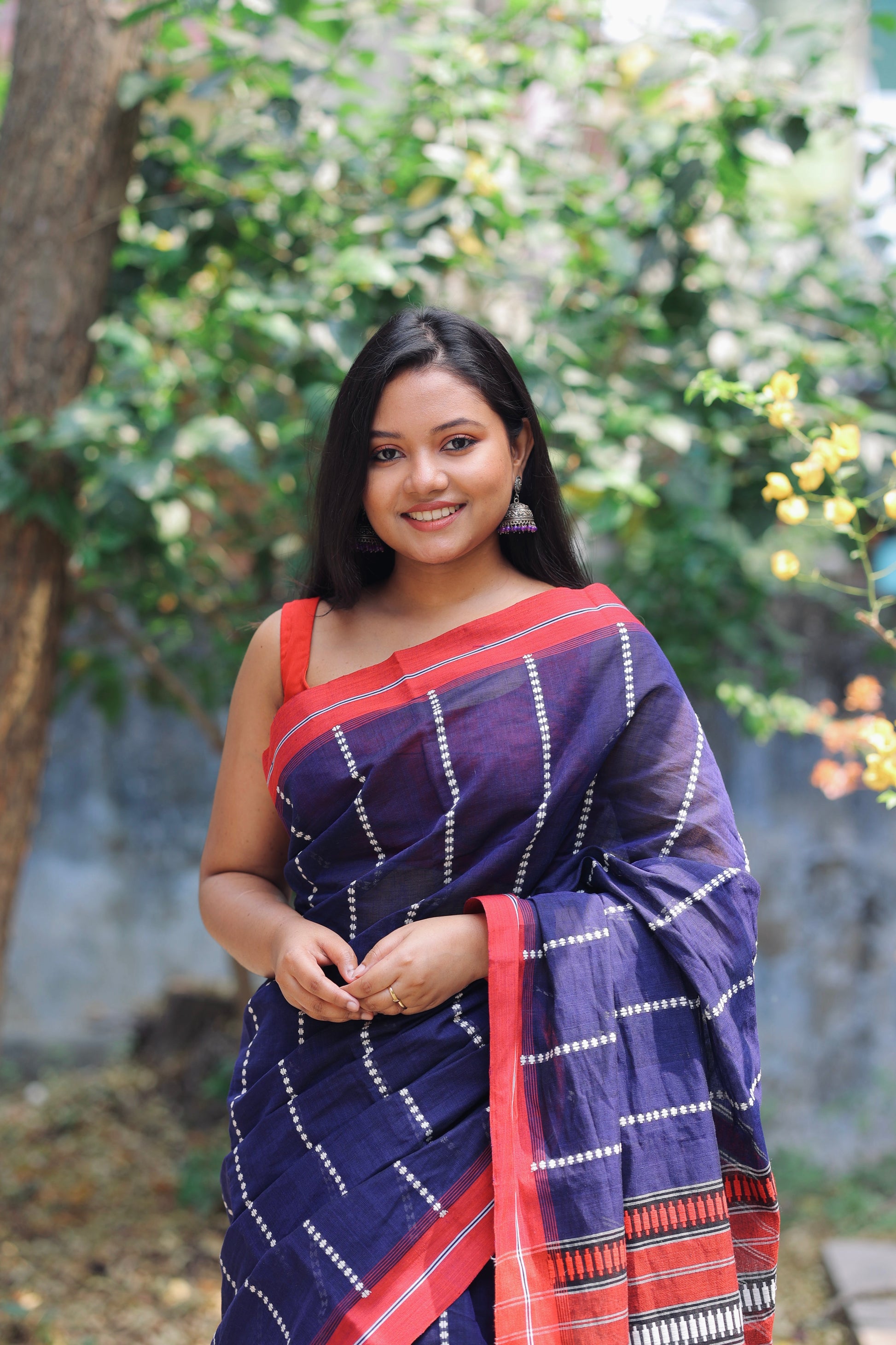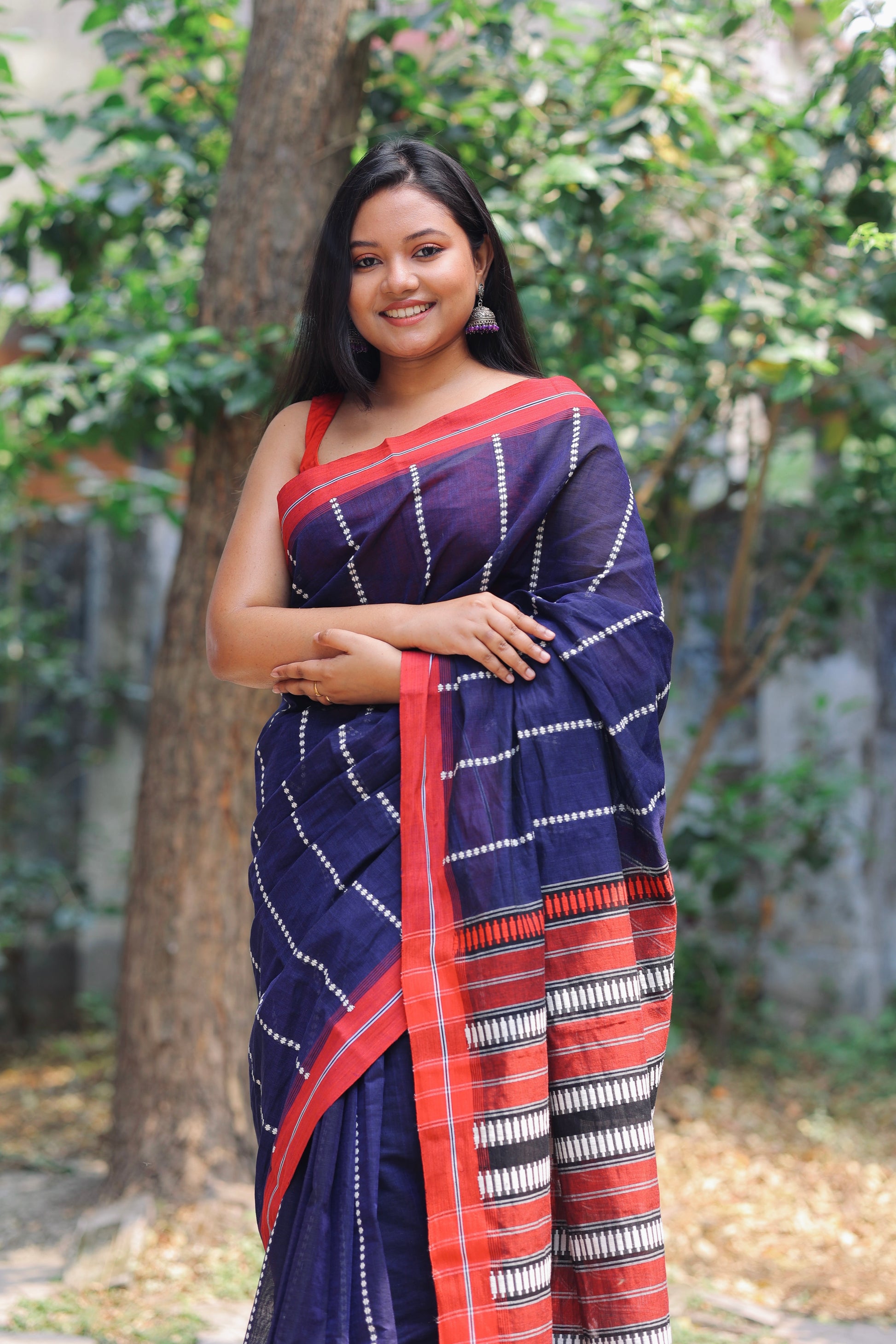 The pure Cotton saree with Jamdani work all over body and palla with Red border