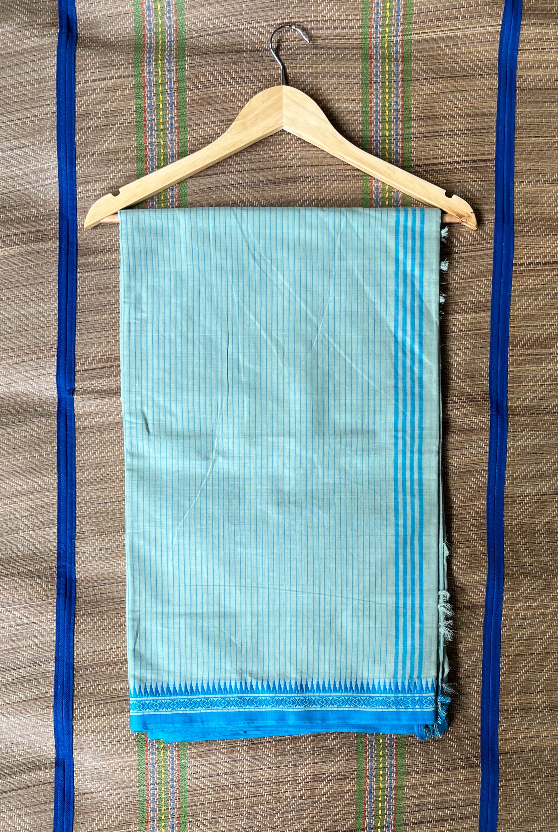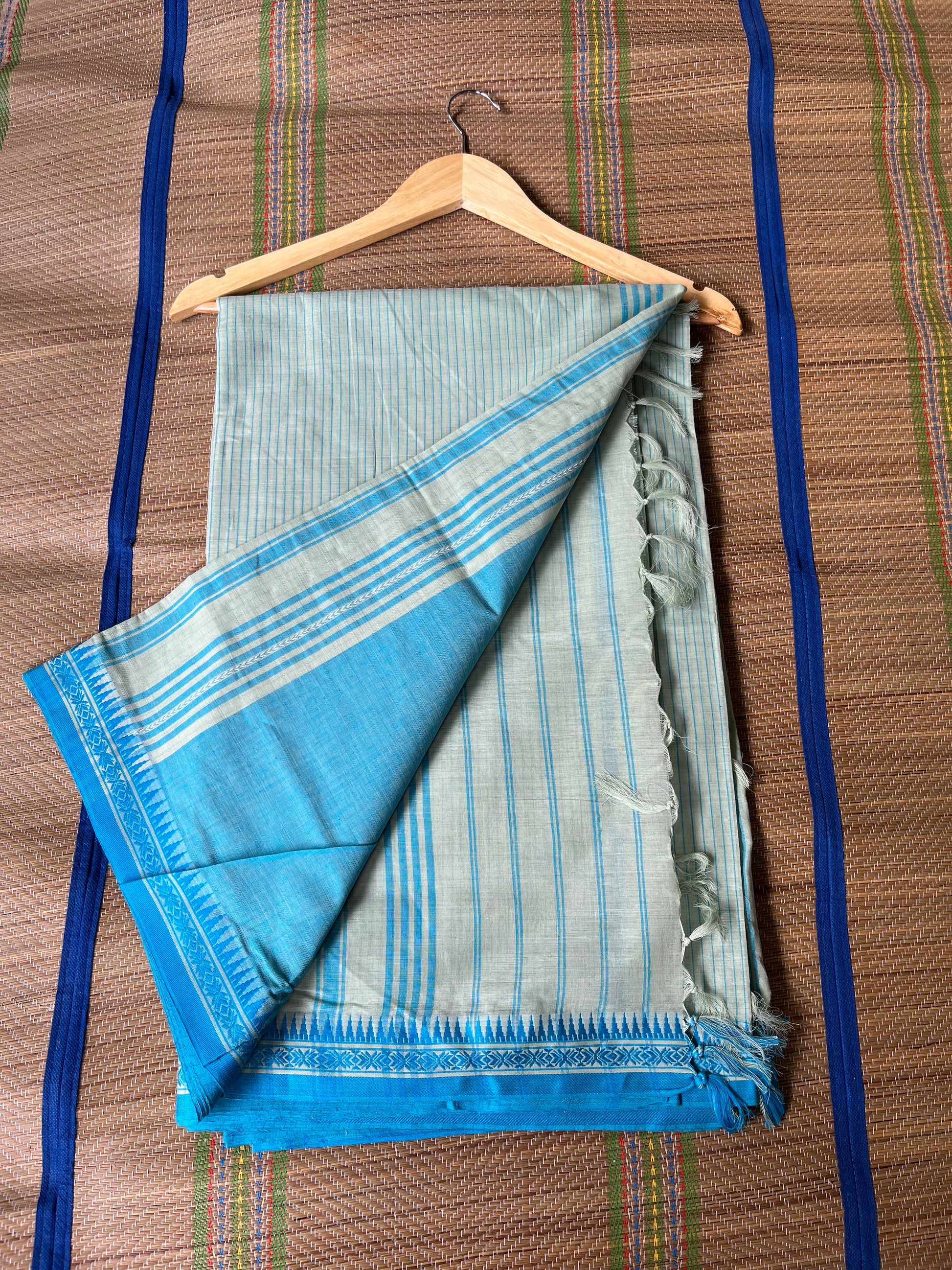 The pure Cotton saree with naksha and temple border and stripes all over body